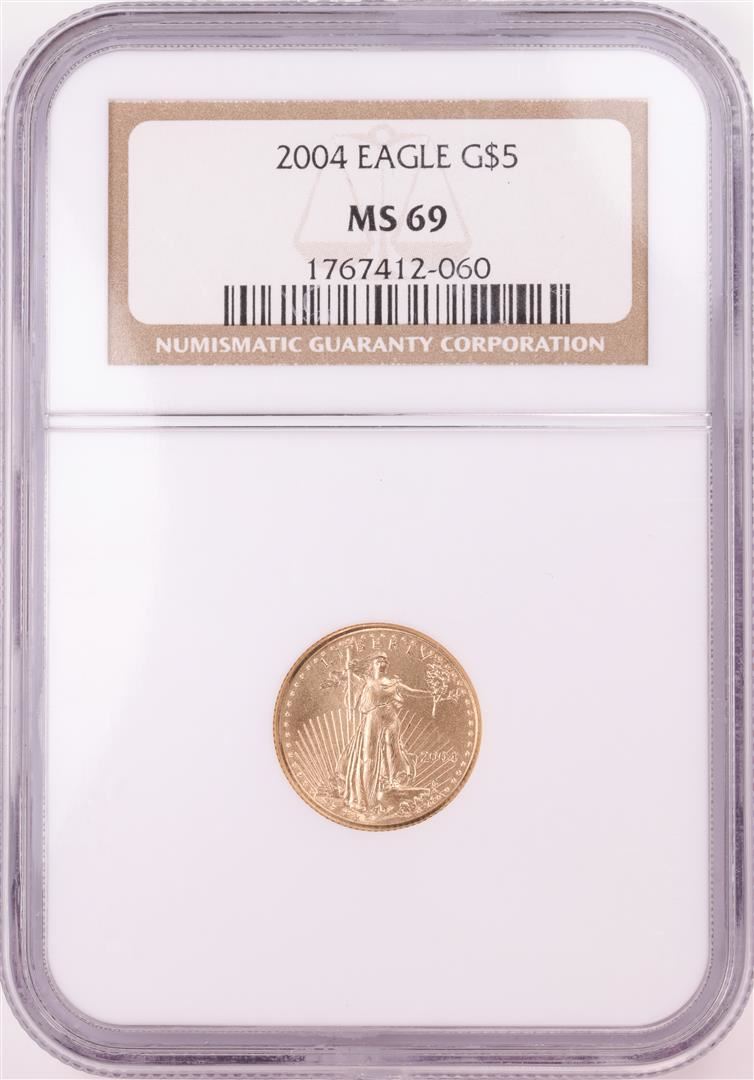 One 2004 $5 American Gold Eagle Coin NGC MS69. NGC Certified.