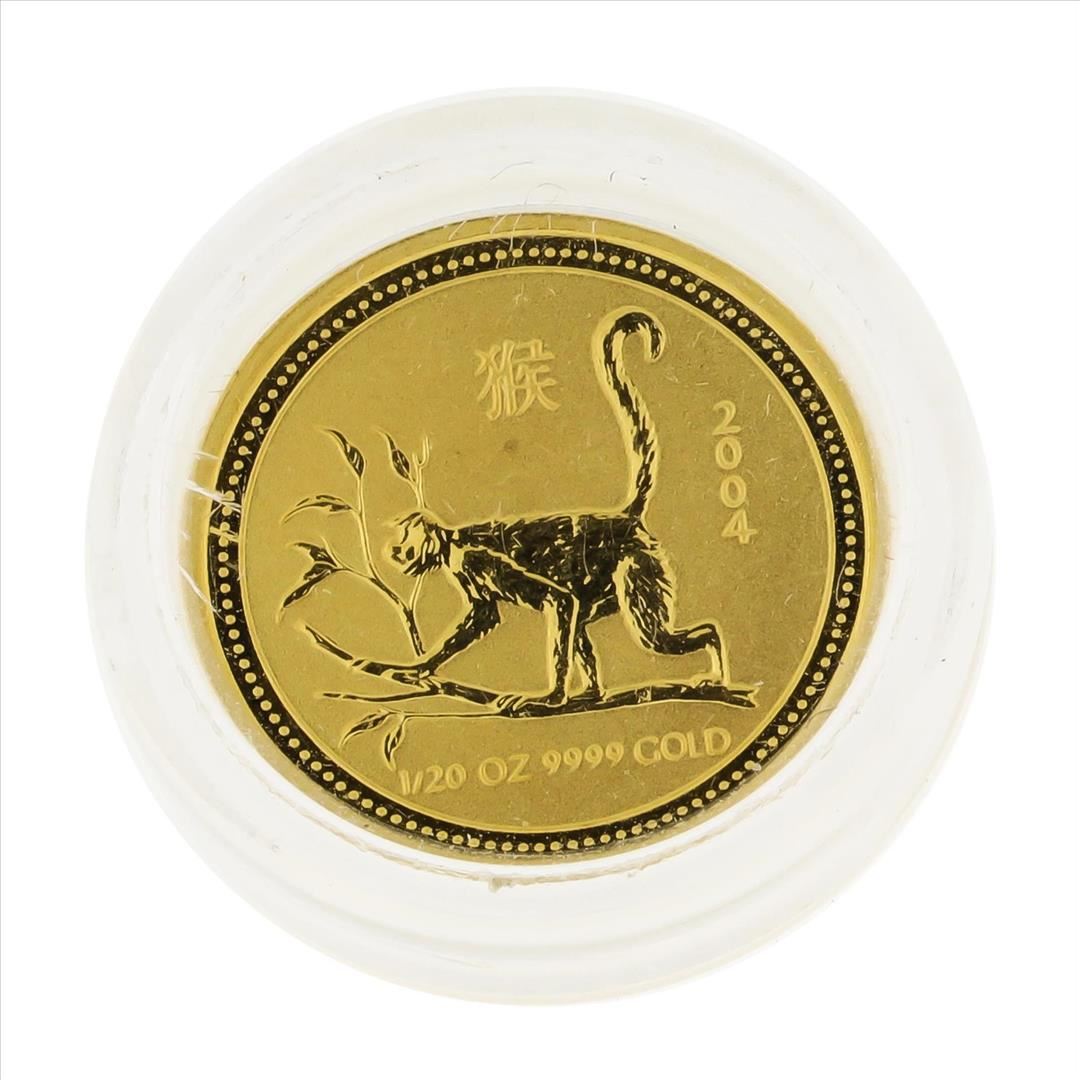 One 2004 $5 Australia 1/20 oz Lunar Year of the Monkey Gold Coin.