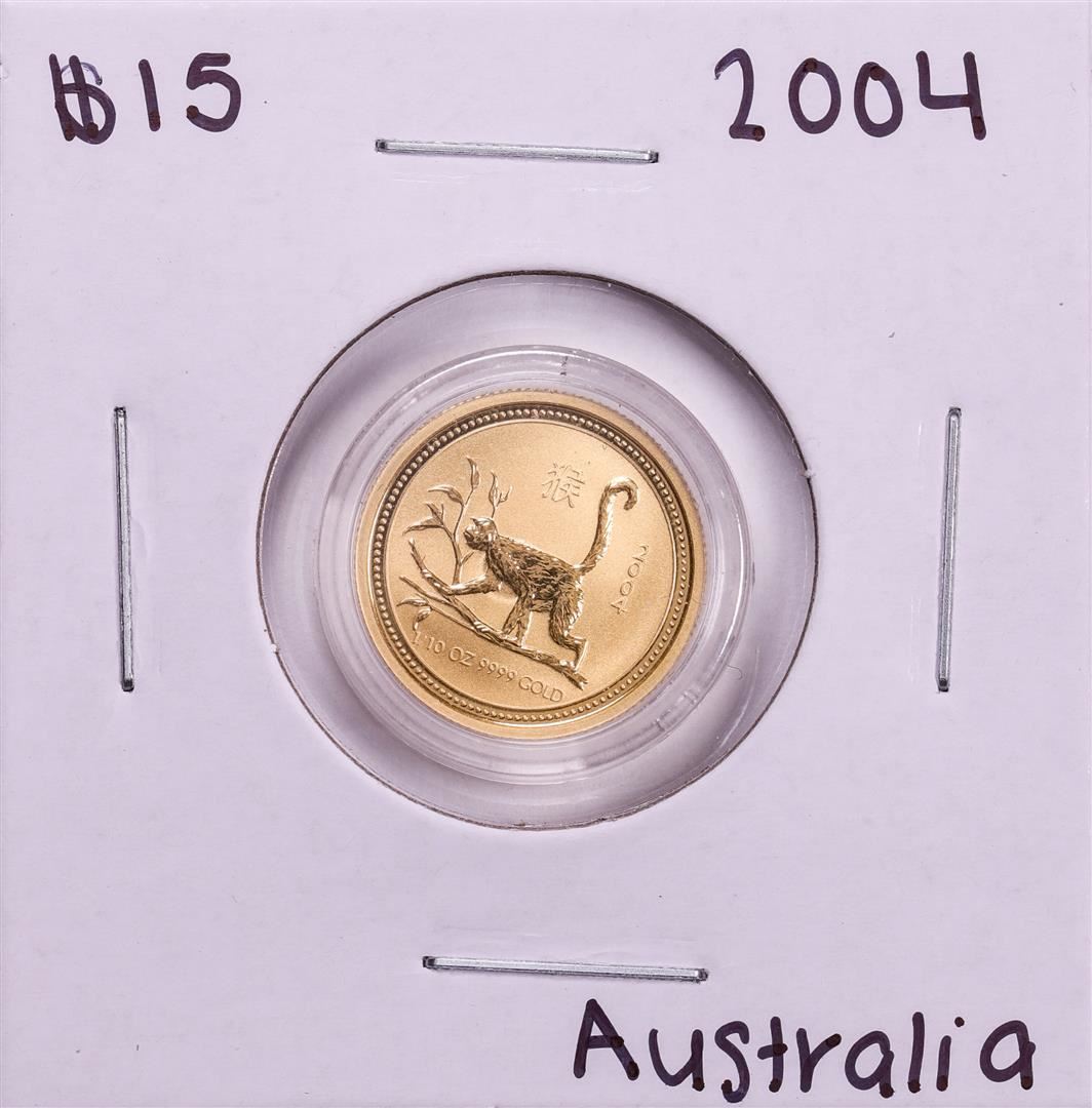 One 2004 Australia $15 Year Of The Monkey 1/10 oz Gold Coin.