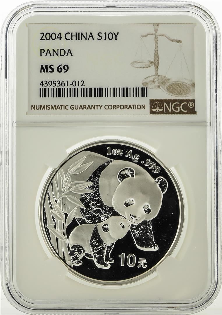 One 2004 China 10 Yuan Silver Panda NGC MS69. NGC Certified.