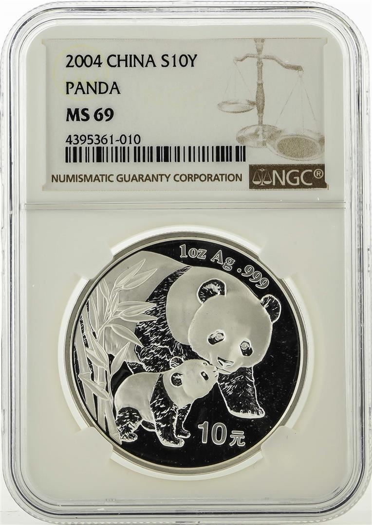 One 2004 China 10 Yuan Silver Panda NGC MS69. NGC Certified.