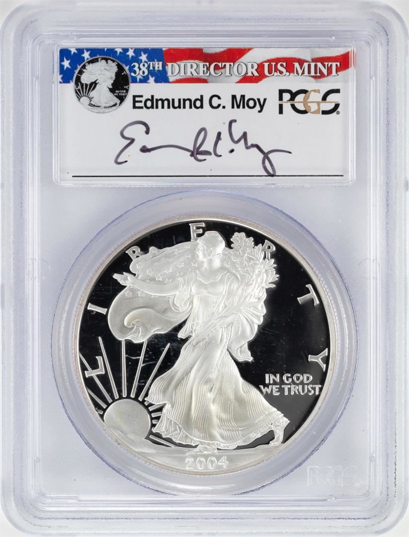 2004-W $1 American Silver Eagle Proof Coin PCGS PR69DCAM W/Edmund C. Moy Signature