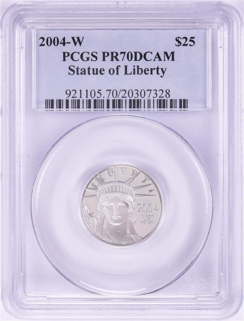 One 2004-W $25 Proof Platinum American Eagle Coin PCGS PR70DCAM. PCGS Graded.