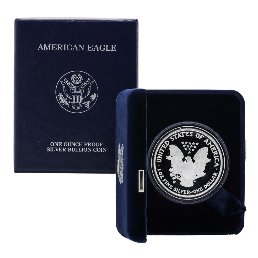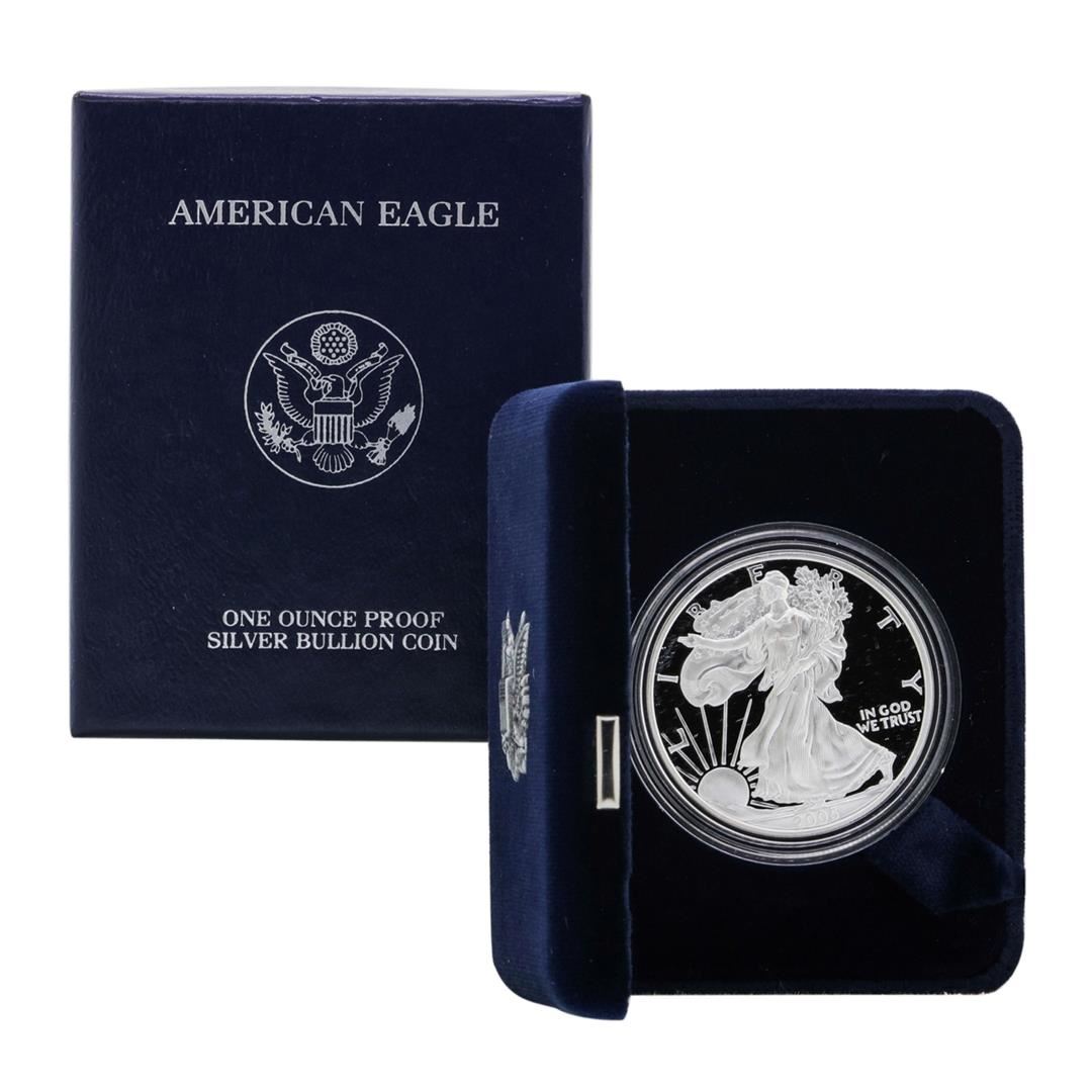 One 2005 $1 American Silver Eagle Proof Coin w/ Box.