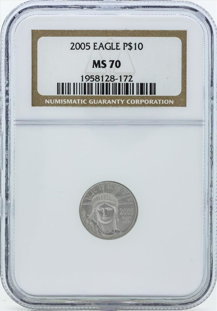 One 2005 $10 American Platinum Eagle Coin NGC MS70. NGC Certified.