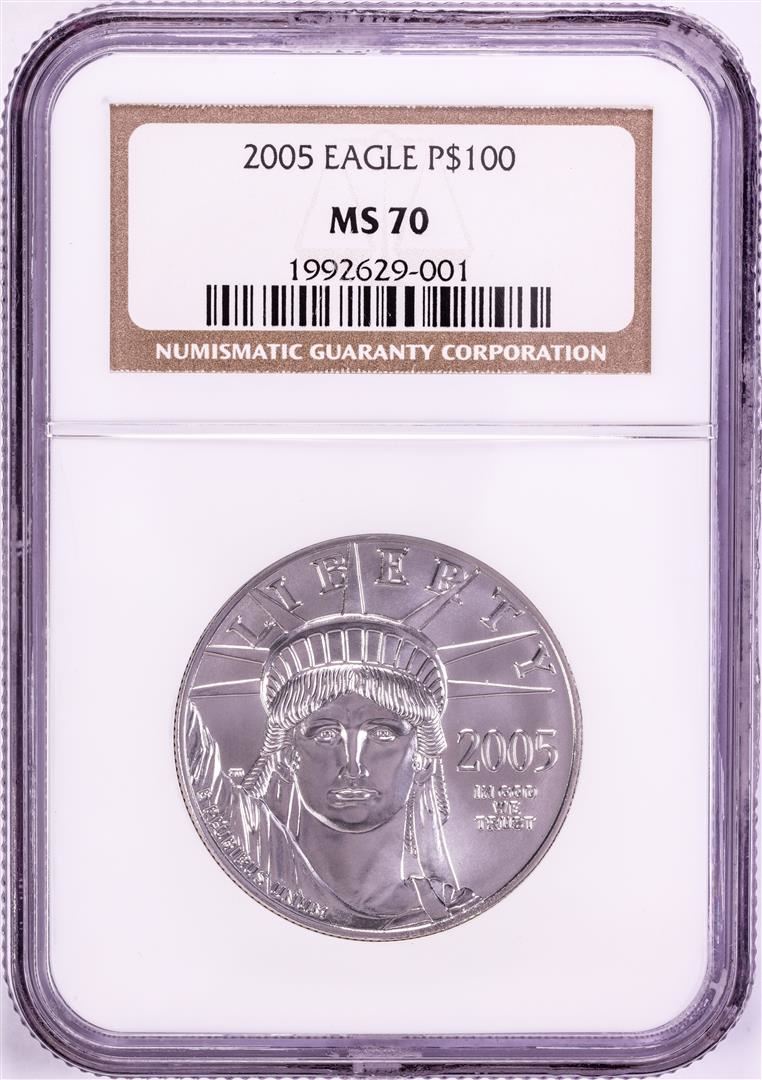 One 2005 $100 Platinum American Eagle Coin NGC MS70. NGC Certified.
