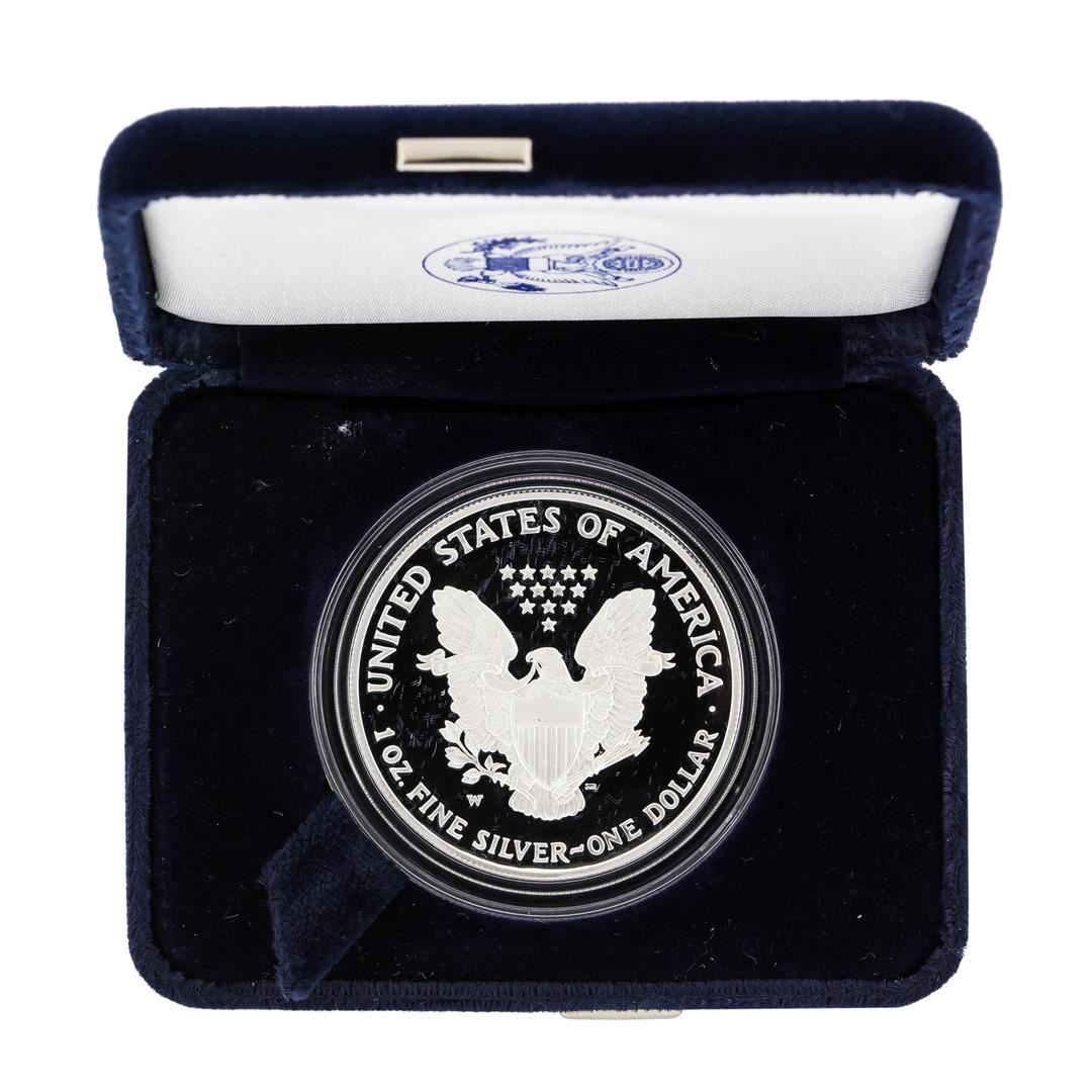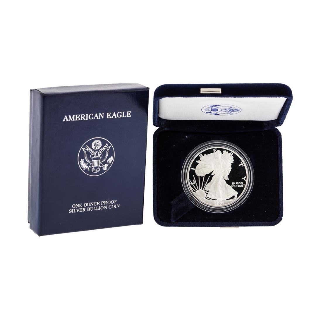 One 2005 1oz American Silver Eagle Proof Coin with Box.