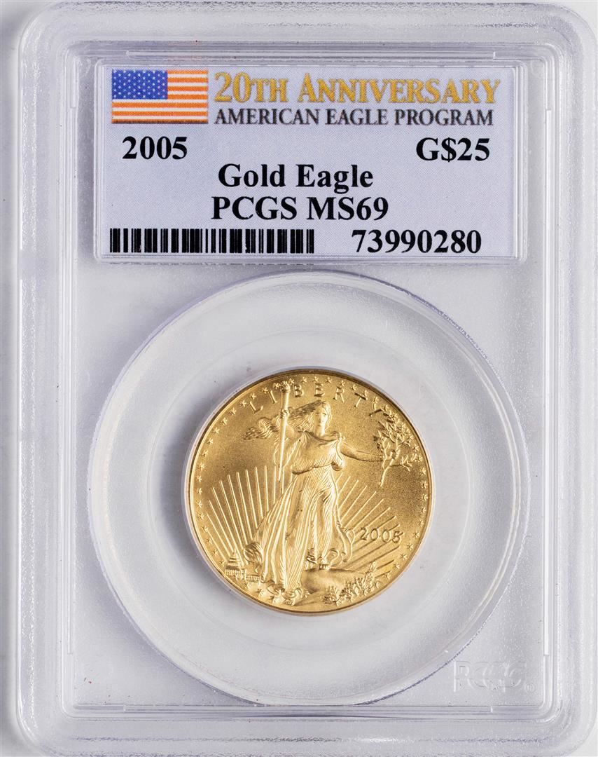 One 2005 $25 American Gold Eagle Coin PCGS MS69. PCGS Graded.