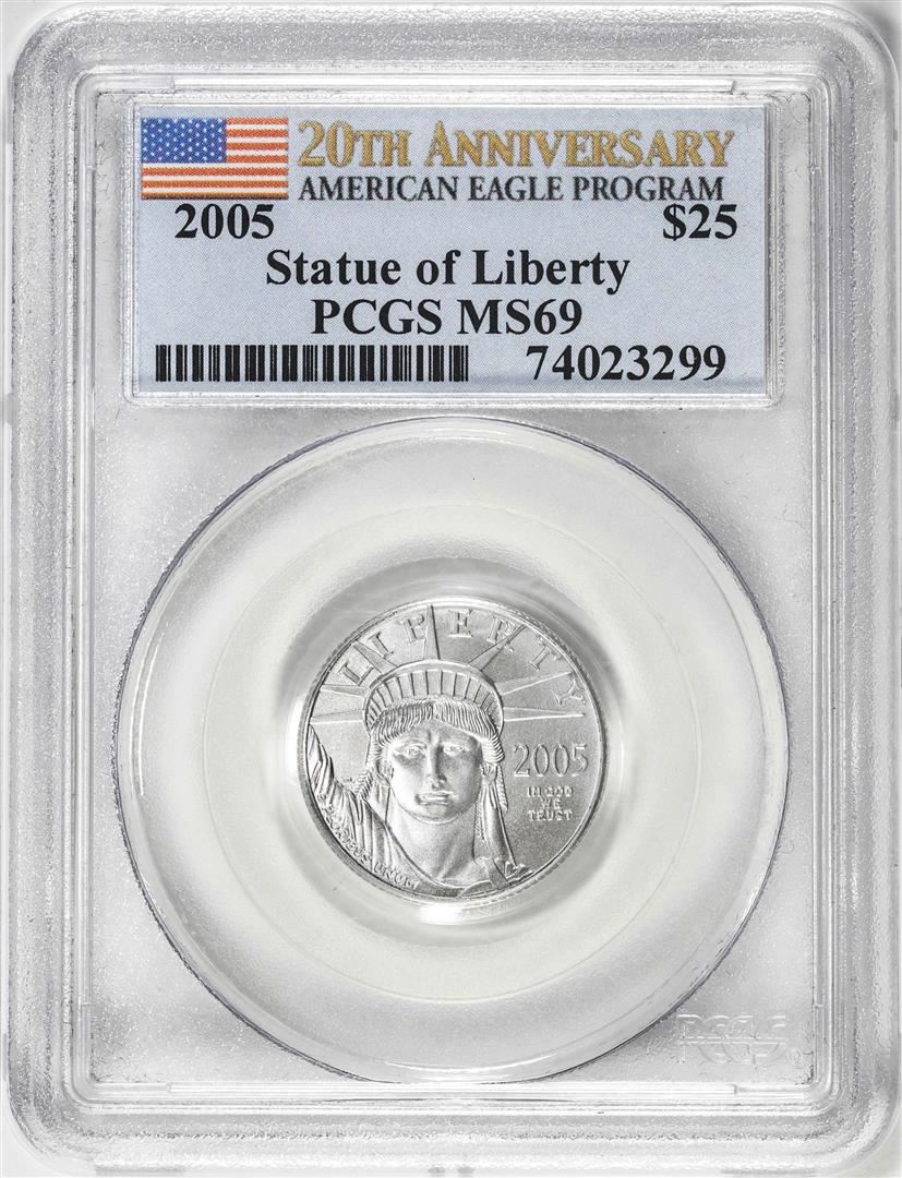 One 2005 $25 American Platinum Eagle Coin PCGS MS69. PCGS Graded.
