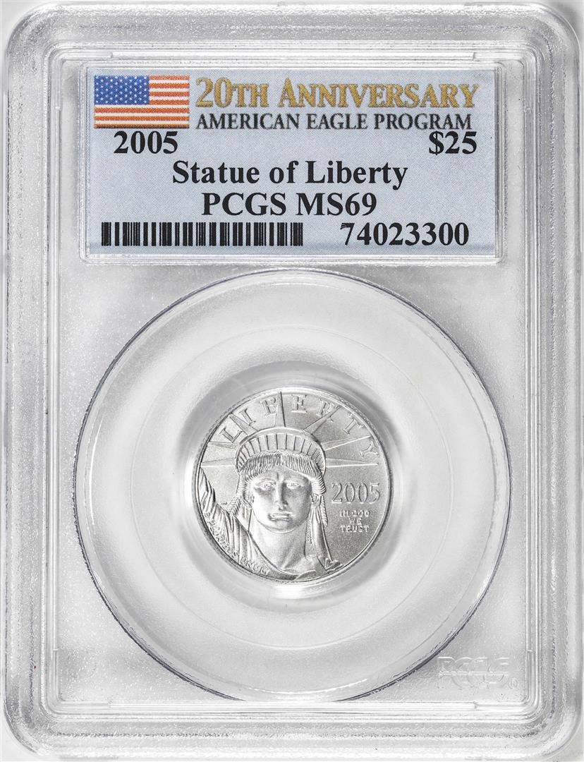 One 2005 $25 American Platinum Eagle Coin PCGS MS69. PCGS Graded.