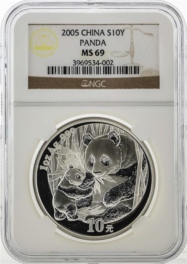 One 2005 China 10 Yuan Silver Panda NGC MS69. NGC Certified.