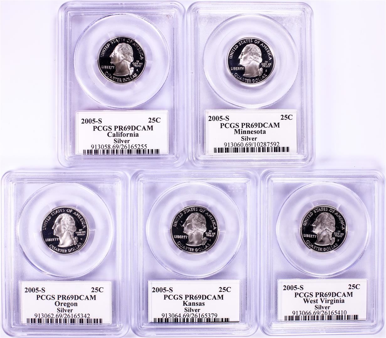 2005-S Silver Proof State Quarter (5) Coin Set PCGS PR69DCAM