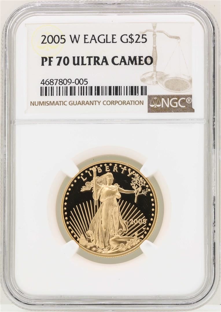 One 2005-W $25 American Gold Eagle Coin NGC PF70 Ultra Cameo. NGC Certified.