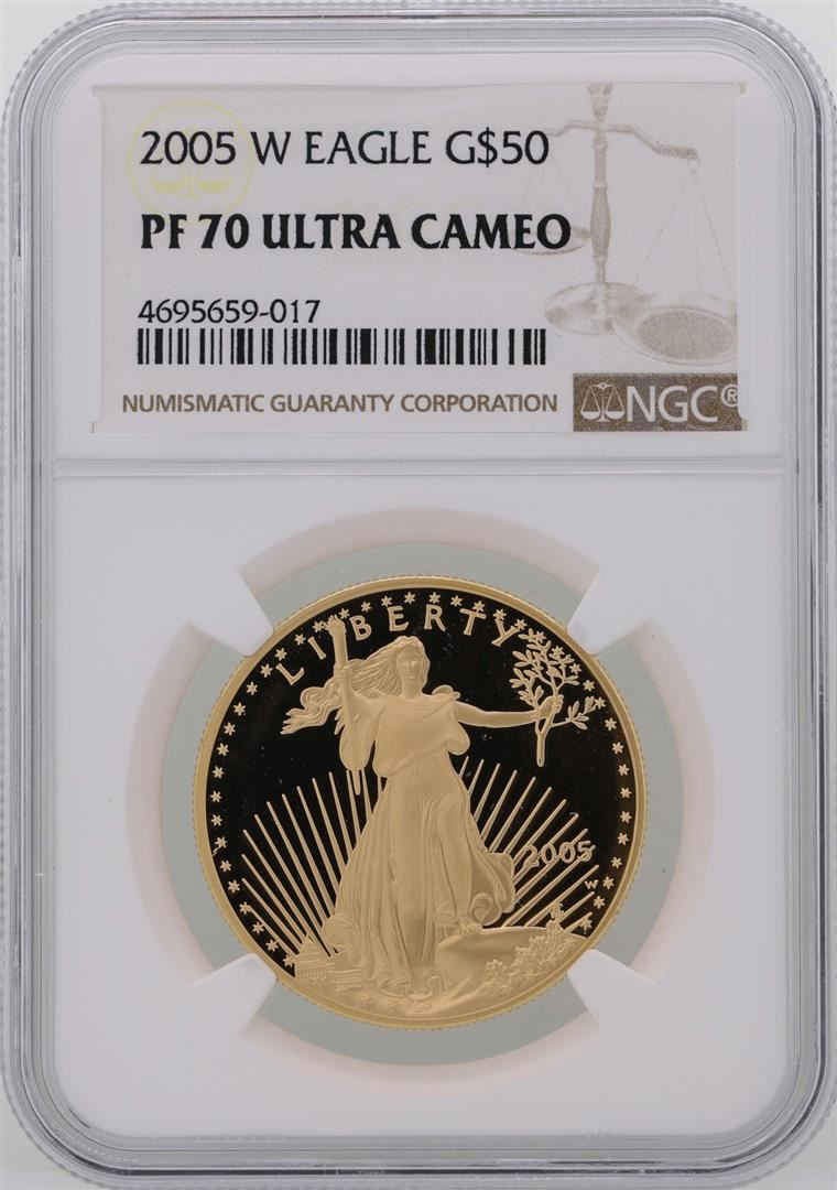 One 2005-W $50 American Gold Eagle Coin NGC PF 70 Ultra Cameo. NGC Certified.