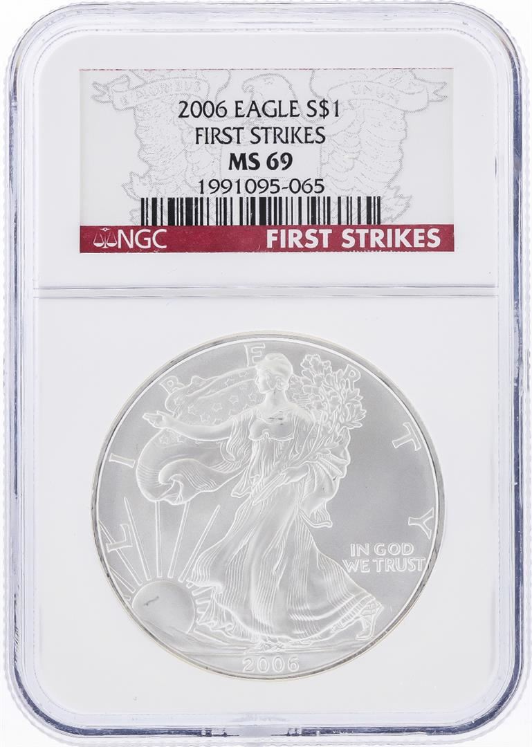 One 2006 $1 American Silver Eagle Coin NGC Graded MS69. NGC Certified.
