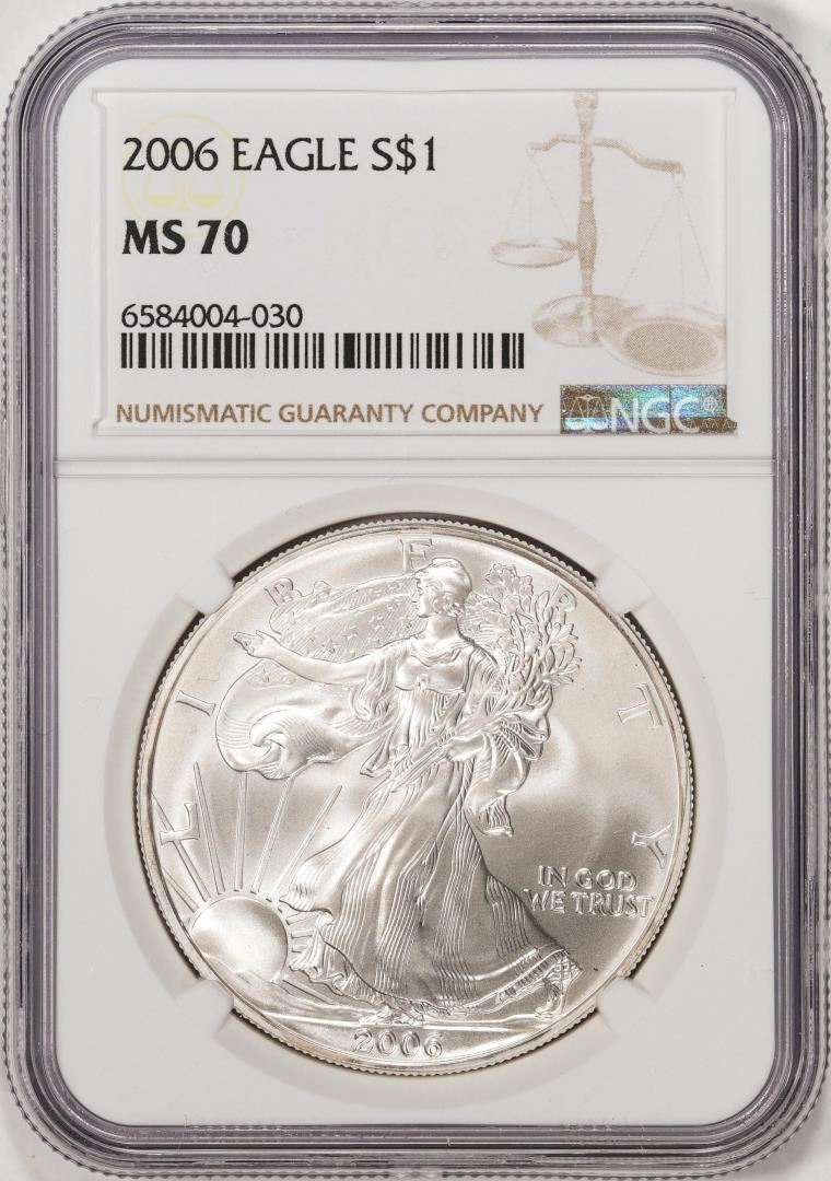 One 2006 $1 American Silver Eagle Coin NGC MS70. NGC Certified.