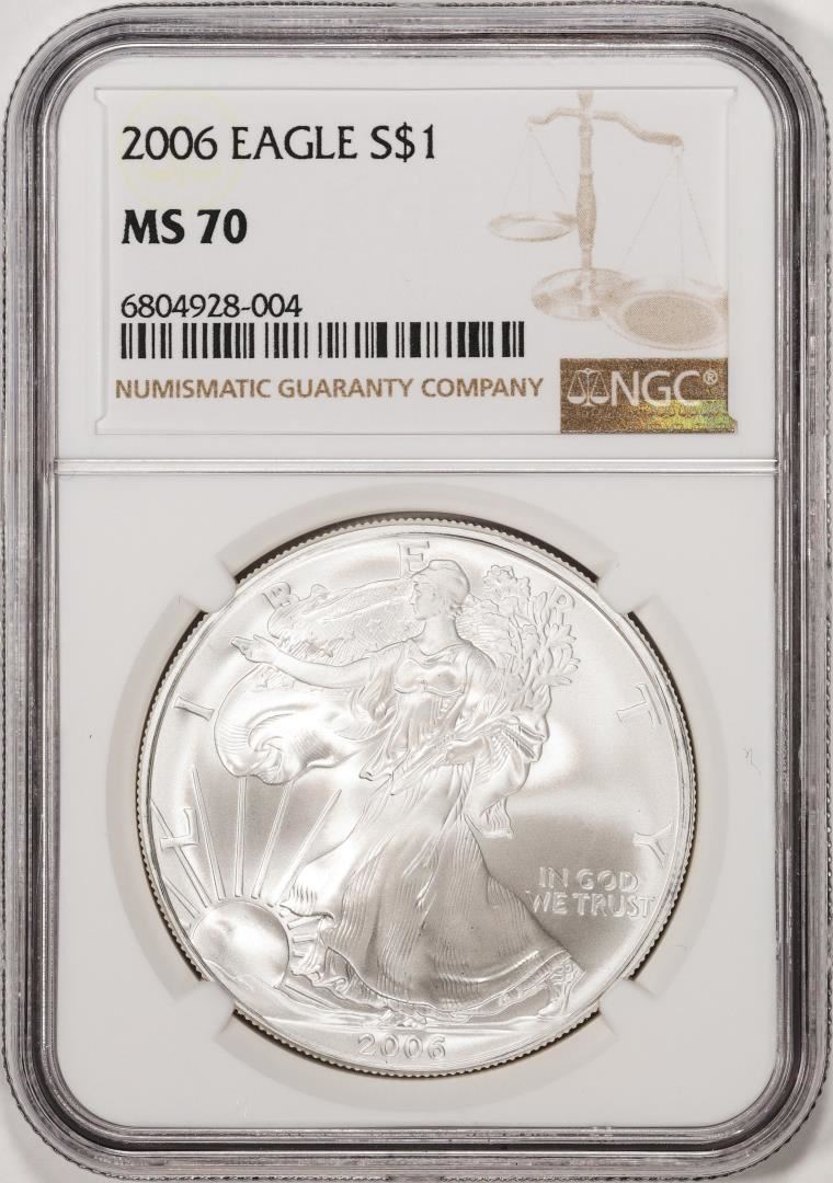 One 2006 $1 American Silver Eagle Coin NGC MS70. NGC Certified.