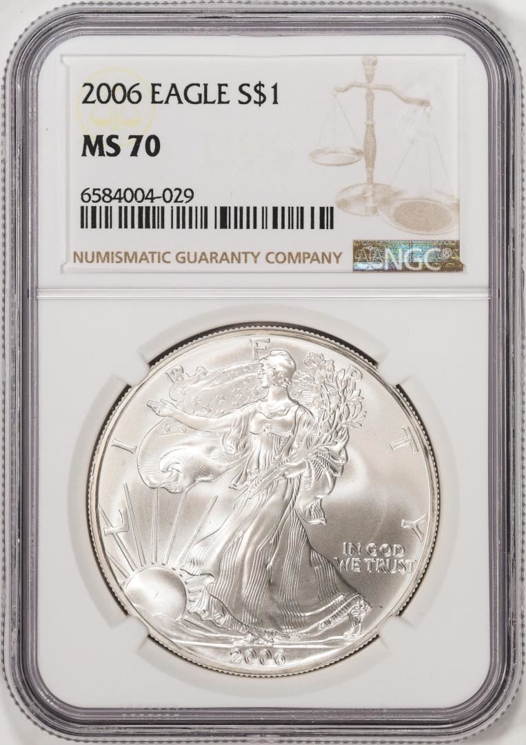 One 2006 $1 American Silver Eagle Coin NGC MS70. NGC Certified.