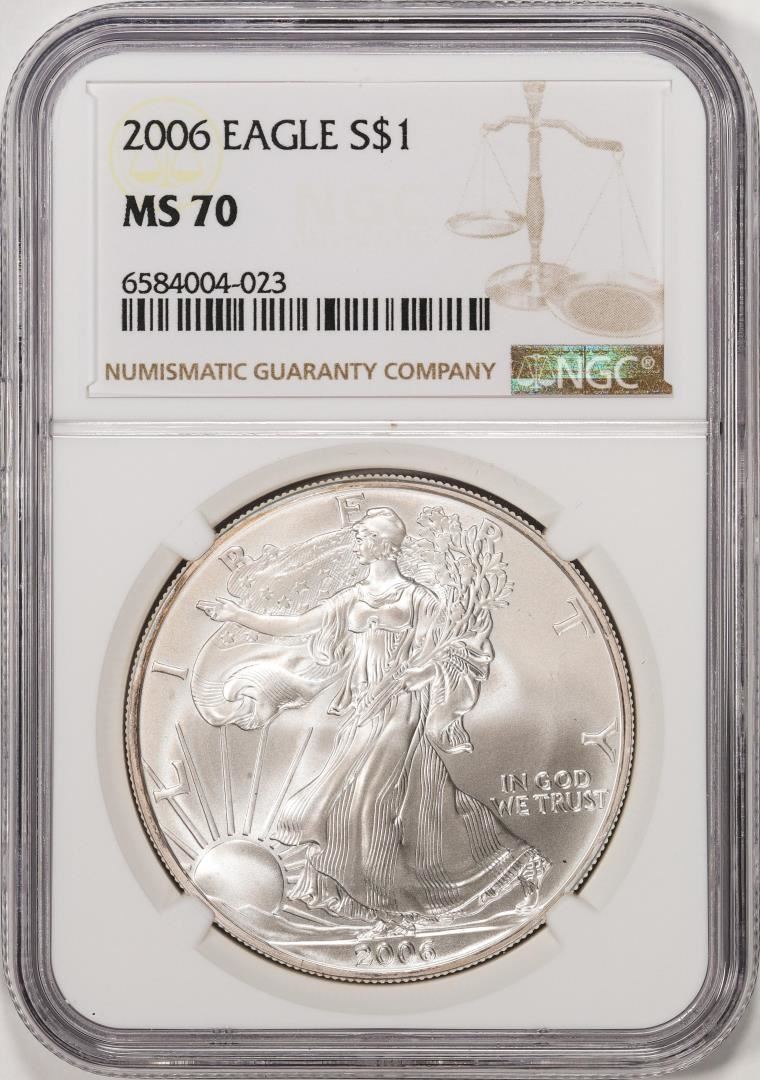 One 2006 $1 American Silver Eagle Coin NGC MS70. NGC Certified.