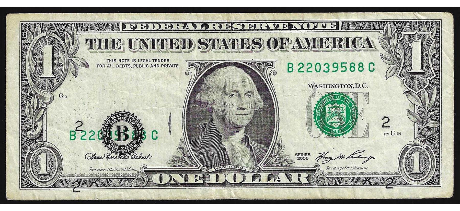 One 2006 $1 Federal Reserve Note Shift ERROR.