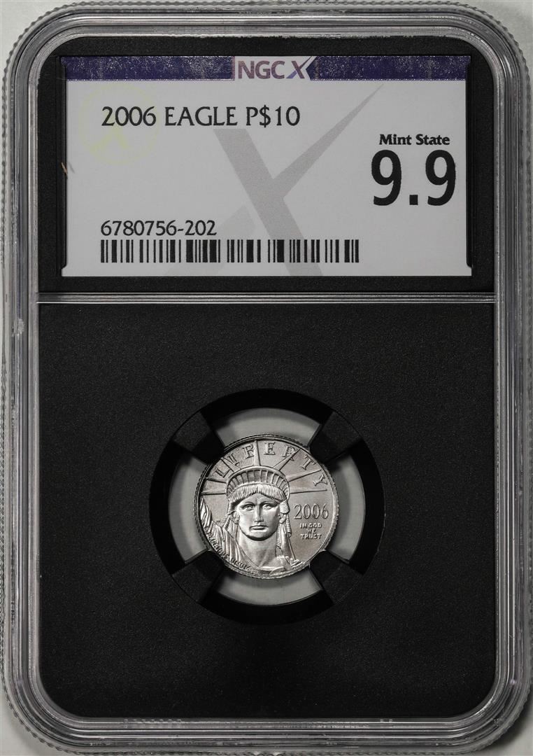 One 2006 $10 Platinum American Eagle Coin NGCX Mint State 9.9. NGCX Certified.