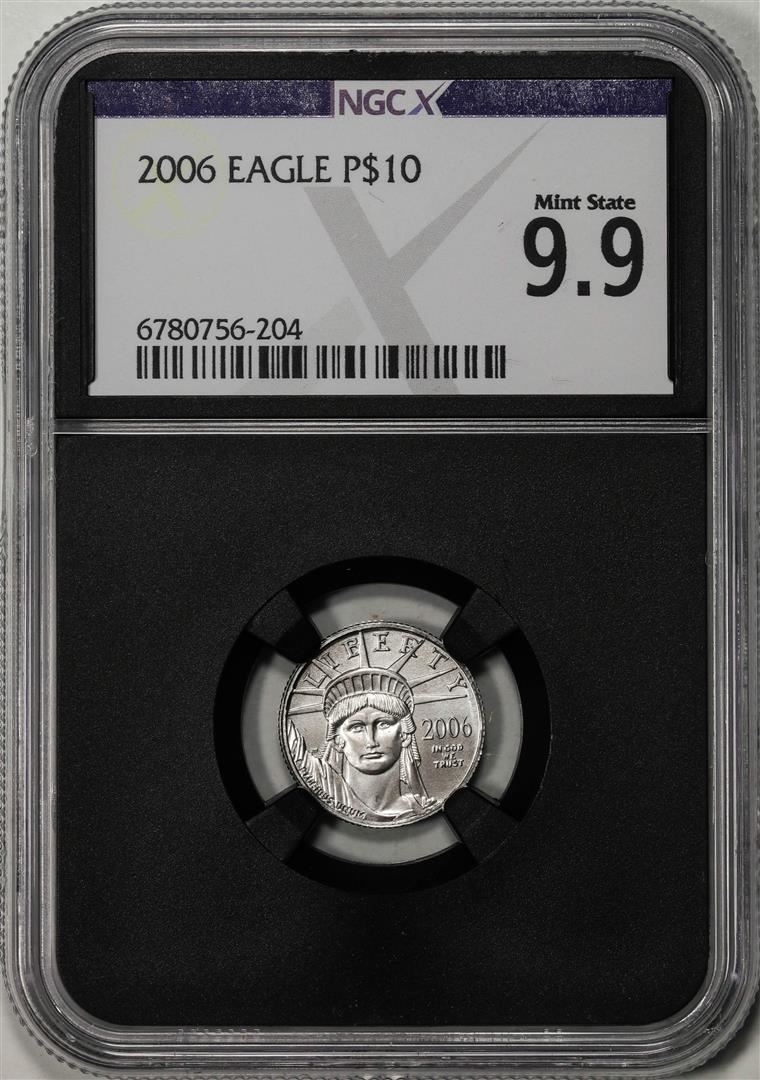 One 2006 $10 Platinum American Eagle Coin NGCX Mint State 9.9. NGCX Certified.