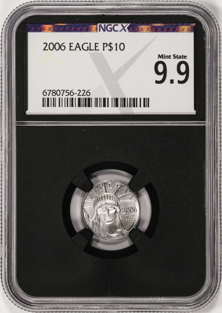 One 2006 $10 Platinum American Eagle Coin NGCX Mint State 9.9. NGCX Certified.