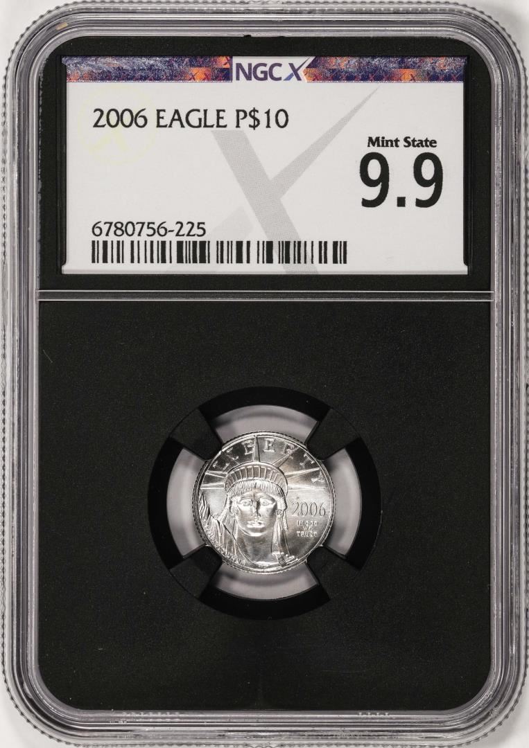 One 2006 $10 Platinum American Eagle Coin NGCX Mint State 9.9. NGCX Certified.