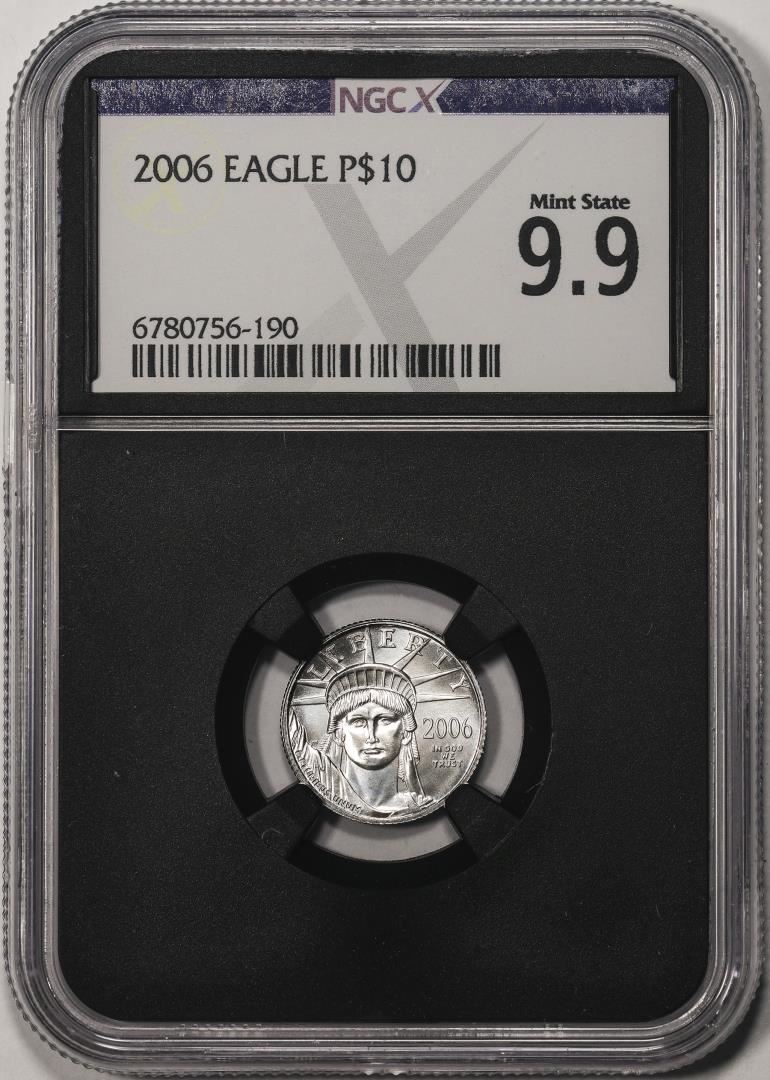 One 2006 $10 Platinum American Eagle Coin NGCX Mint State 9.9. NGCX Certified.