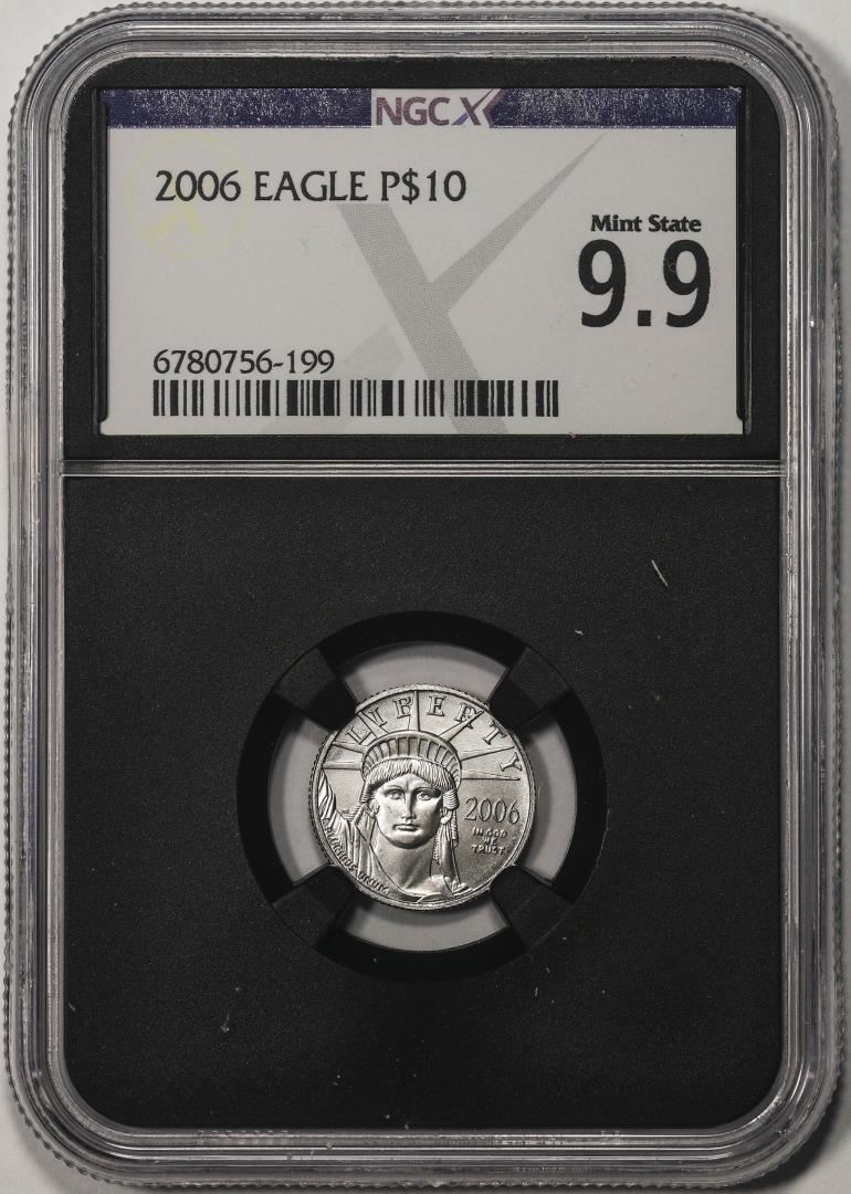 One 2006 $10 Platinum American Eagle Coin NGCX Mint State 9.9. NGCX Certified.