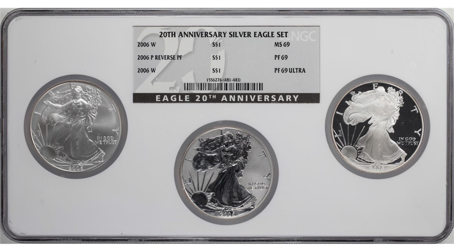 One 2006 20th Anniversary (3) Coin American Silver Eagle Set NGC MS69/PF69. NGC Certified.