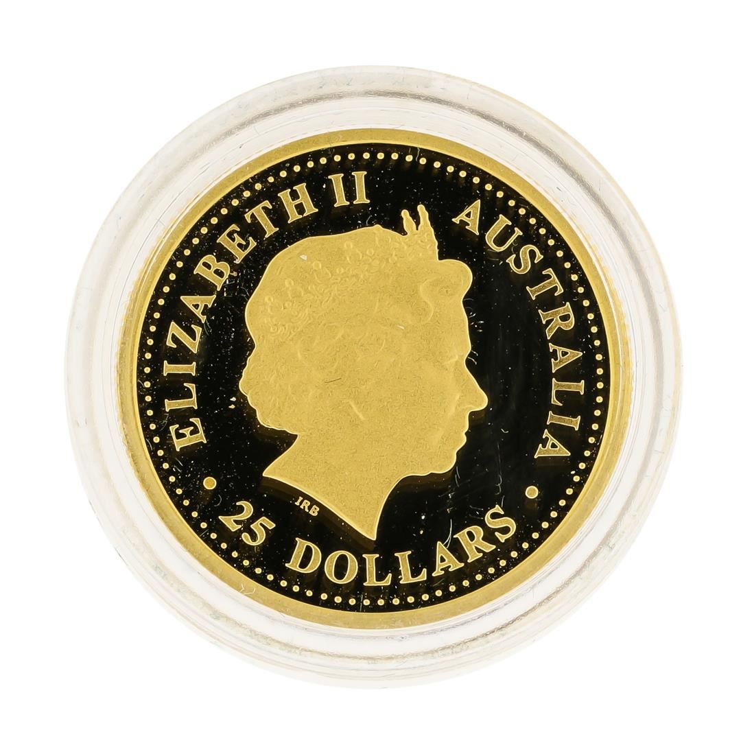 One 2006 $25 Australia Dog 1/4 oz Gold Coin.