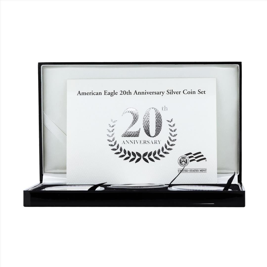 One 2006 (3) Coin $1 American Silver Eagle 20th Anniversary Silver Coin Set.