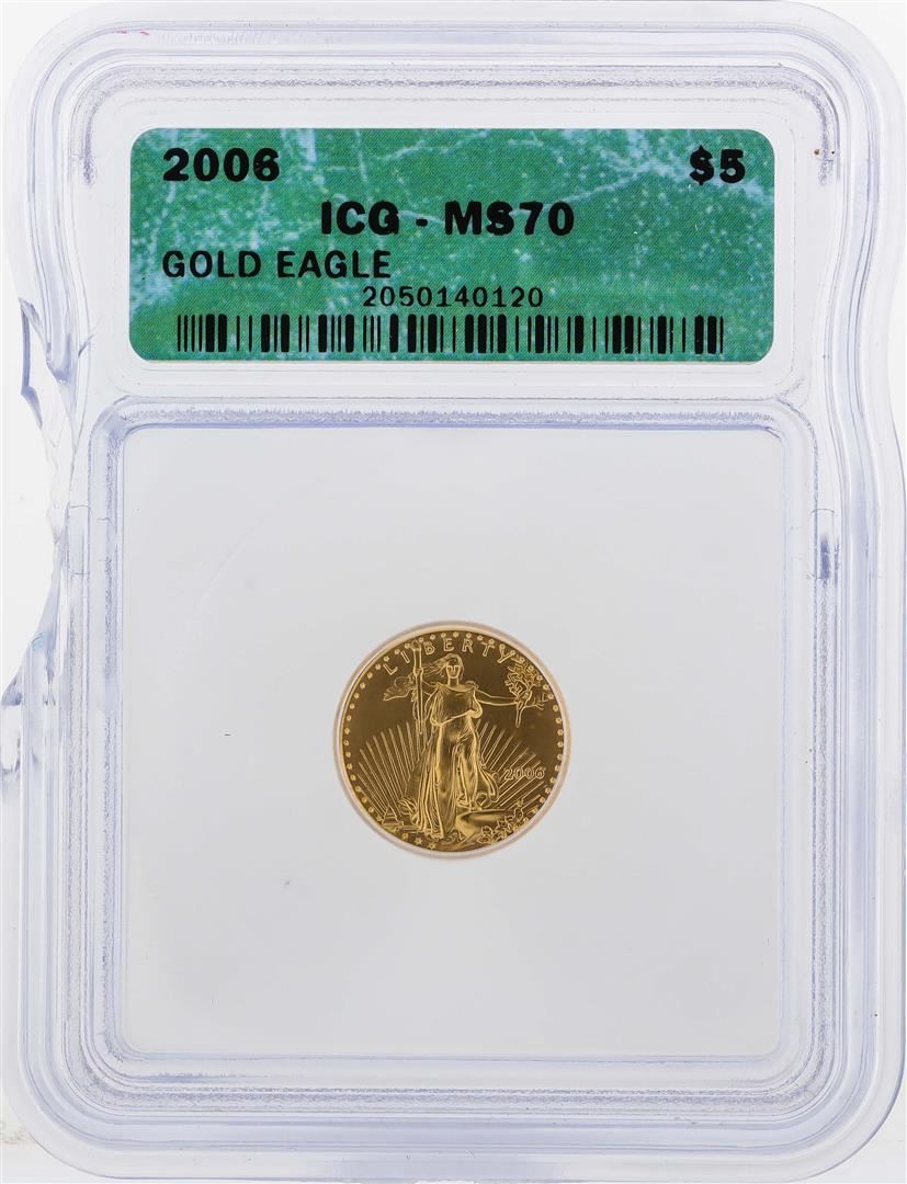 One 2006 $5 American Gold Eagle Coin ICG MS70. ICG Certified.