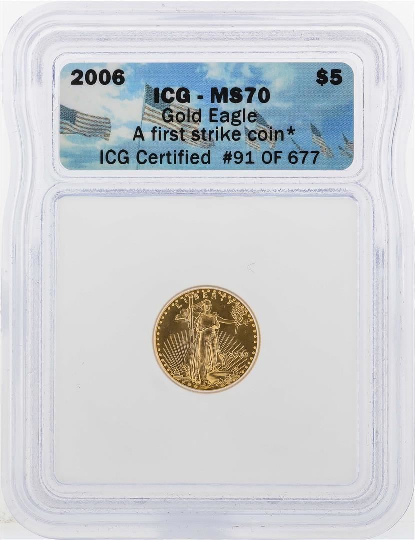 One 2006 $5 American Gold Eagle Coin ICG MS70. ICG Certified.