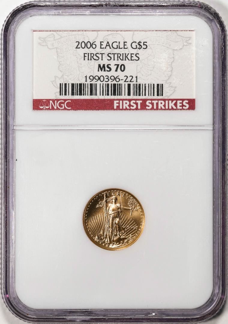 One 2006 $5 American Gold Eagle Coin NGC MS70 First Strikes. NGC Certified.