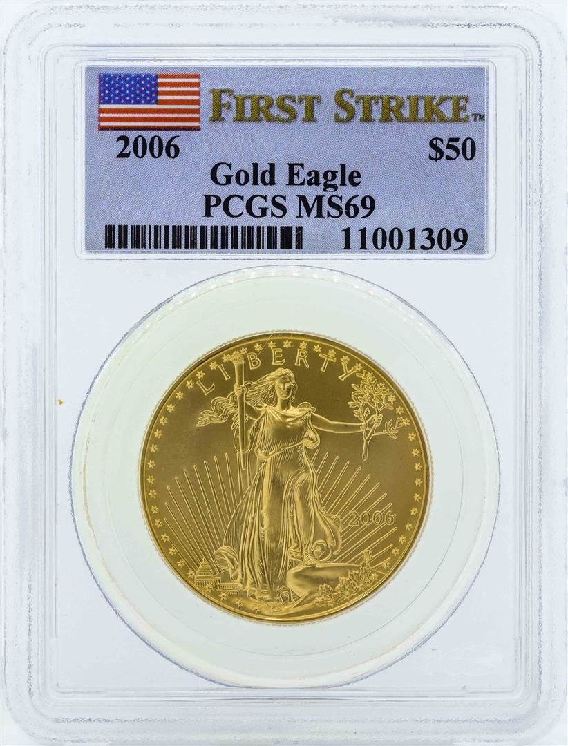 One 2006 $50 American Gold Eagle Coin PCGS MS69 First Strike. PCGS Graded.