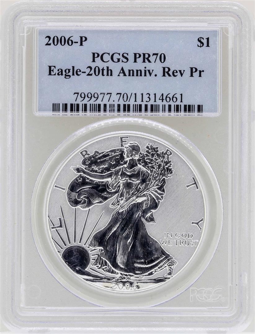 2006-P $1 American Silver Eagle Proof Coin PCGS PR70 20th Anniversary