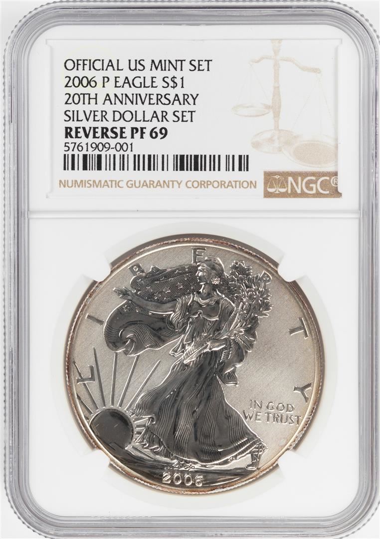 One 2006-P $1 Reverse Proof American Silver Eagle Coin NGC PF69. NGC Certified.