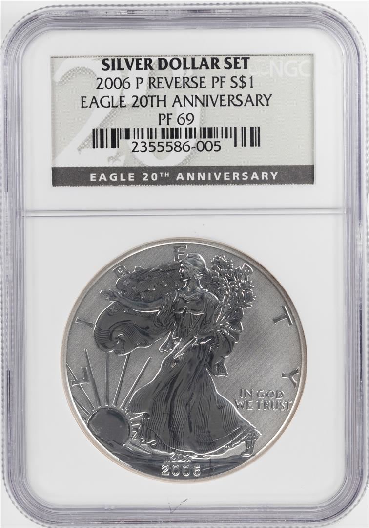 One 2006-P $1 Reverse Proof American Silver Eagle Coin NGC PF69. NGC Certified.