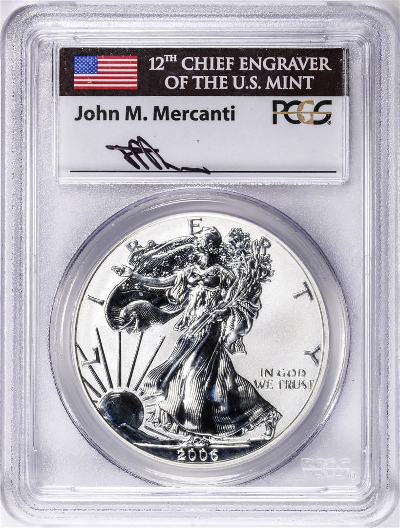 One 2006-P $1 Reverse Proof American Silver Eagle Coin PCGS PR69 Mercanti Signature. PCGS Graded.