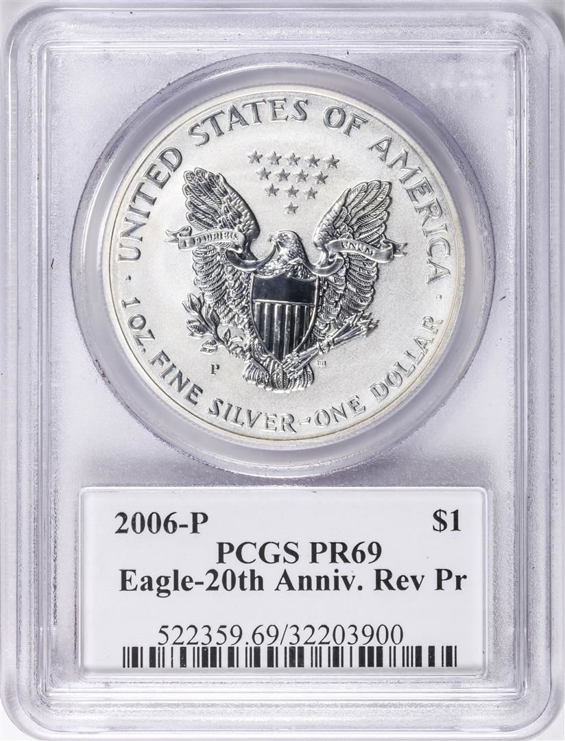 2006-P $1 Reverse Proof American Silver Eagle Coin PCGS PR69 Mercanti Signature