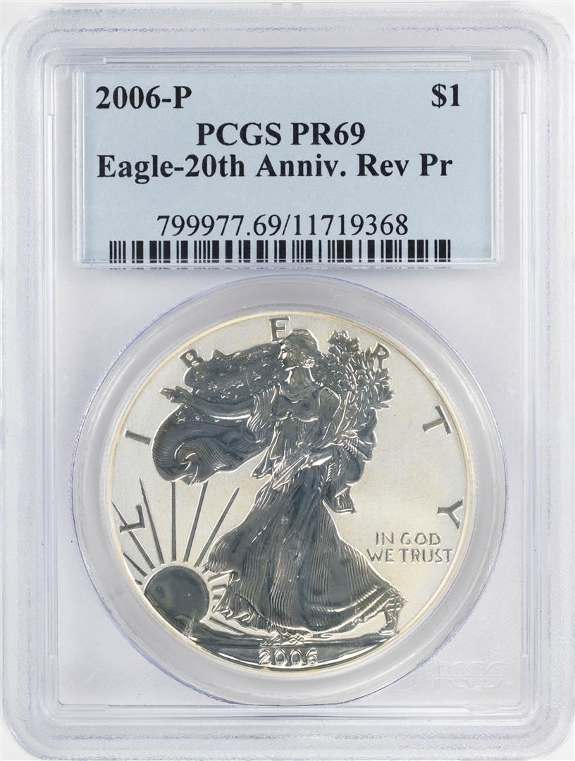 One 2006-P $1 Reverse Proof American Silver Eagle Coin PCGS PR69. PCGS Graded.