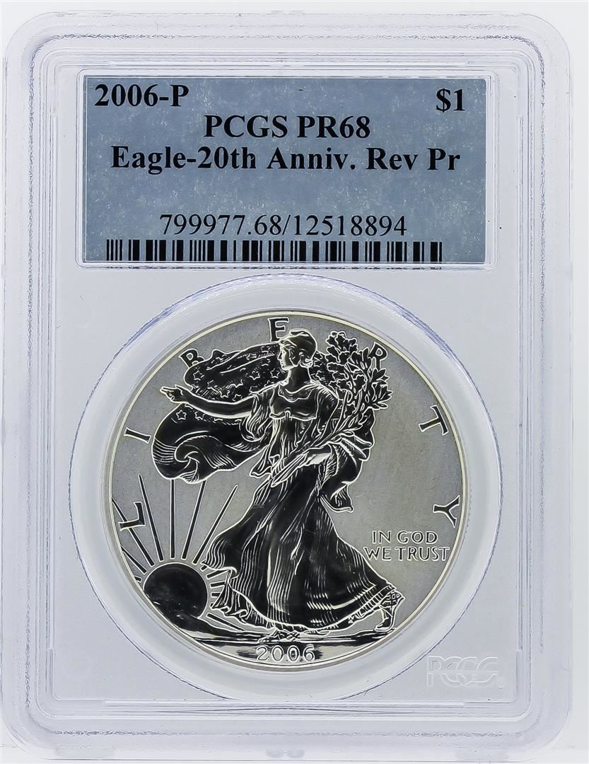 One 2006-P Silver Eagle 20th Anniversary Reverse Proof PCGS PR68. PCGS Graded.