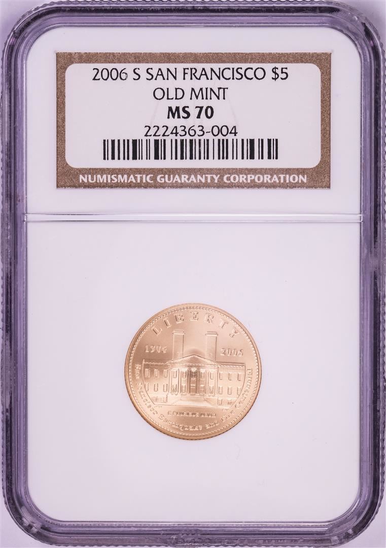 One 2006-S $5 San Francisco Old Mint Commemorative Gold Coin NGC MS70. NGC Certified.