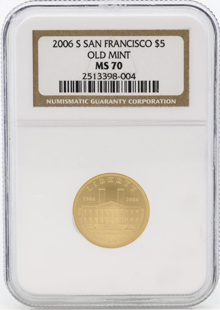 One 2006-S $5 San Francisco Old Mint Gold Coin NGC MS70. NGC Certified.