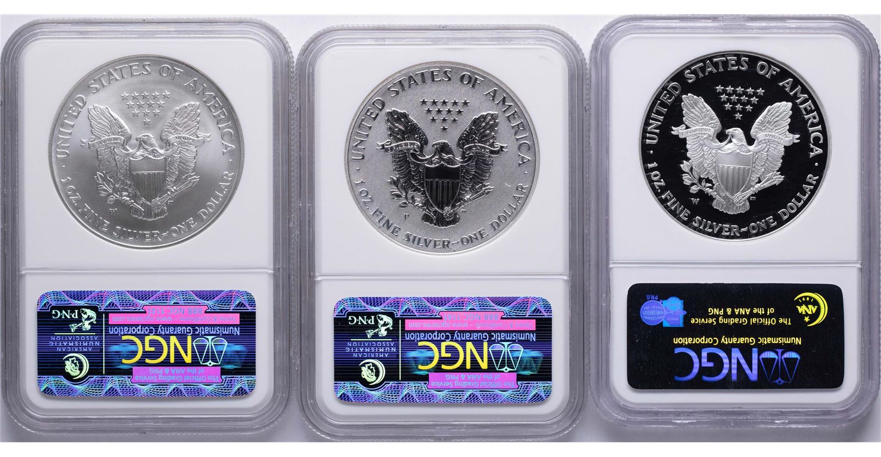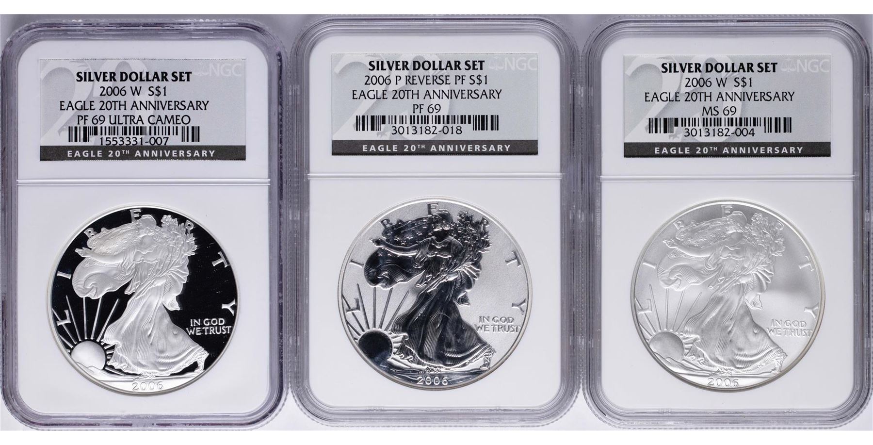 2006 W 20th Anniversary Silver American Eagle Dollar Set NGC MS69/PF69/PF69
