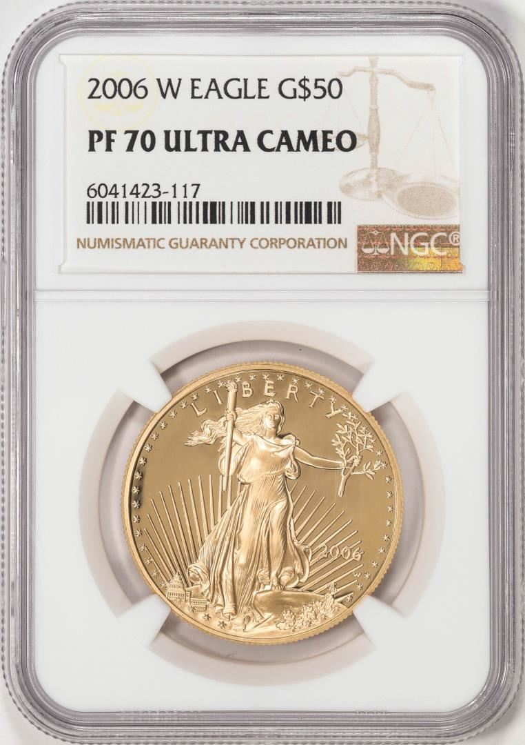 One 2006-W $50 Proof American Gold Eagle Coins NGC PF70 Ultra Cameo. NGC Certified.