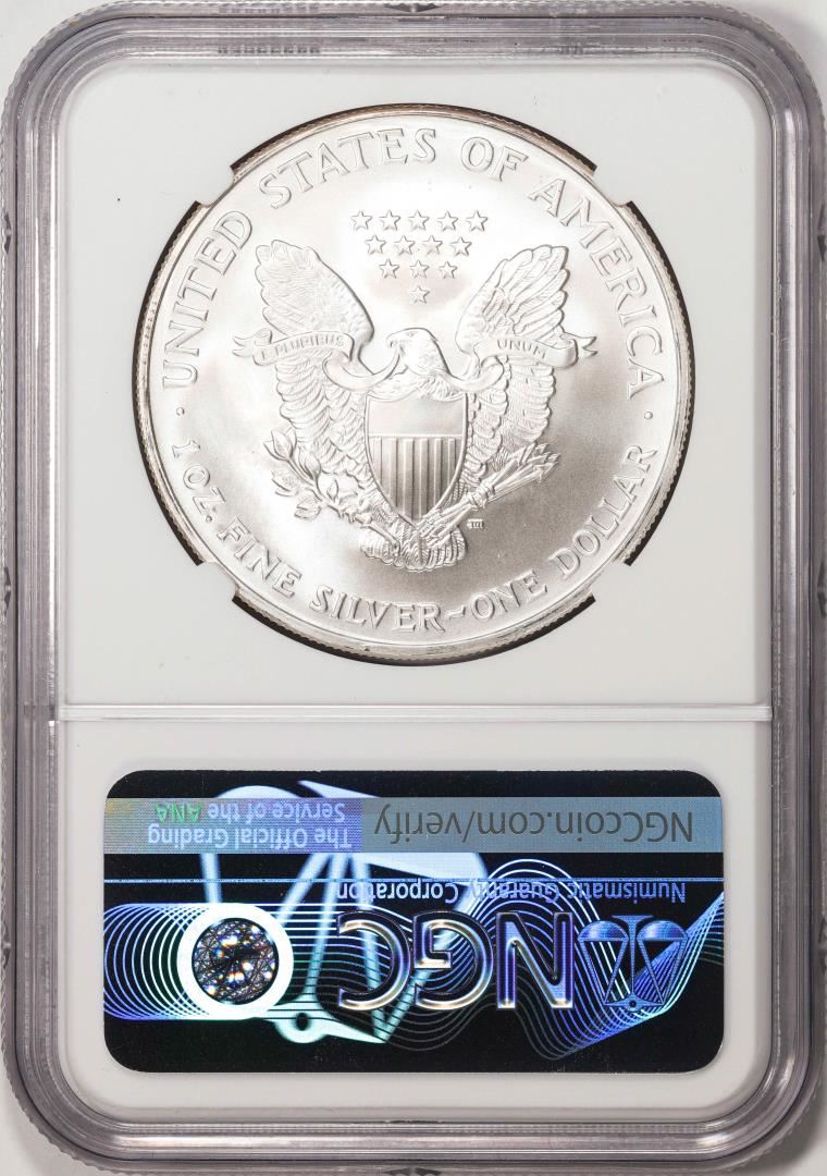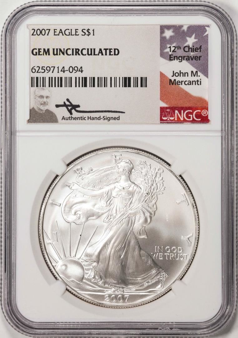 2007 $1 American Silver Eagle Coin NGC Gem Uncirculated Mercanti Signed