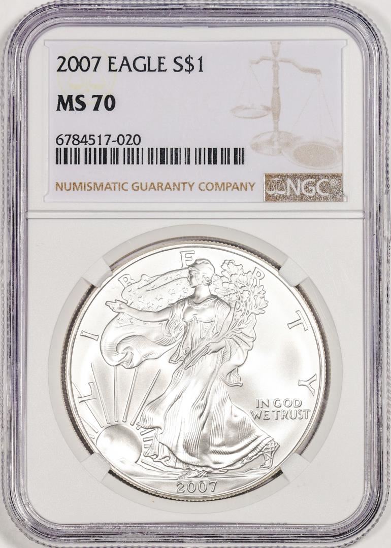 One 2007 $1 American Silver Eagle Coin NGC MS70. NGC Certified.